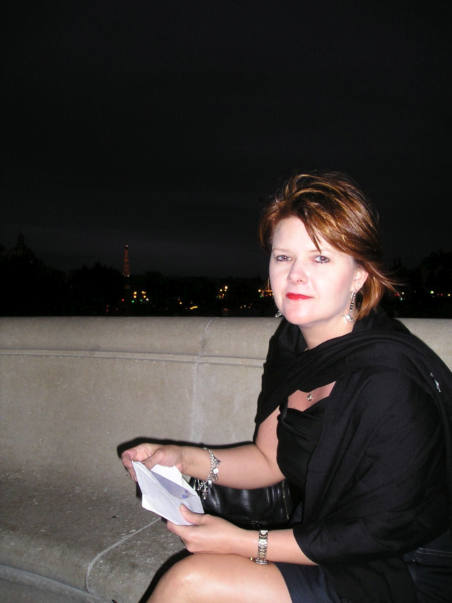 Mimi wearing black scarf holding a letter Creole Sausage Crescent City Appetizer www.diningwithmimi.com